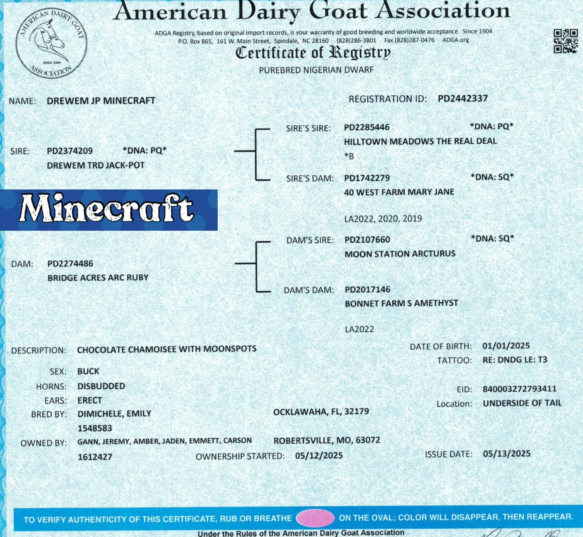 DD: BONNET FARM S AMETHYST